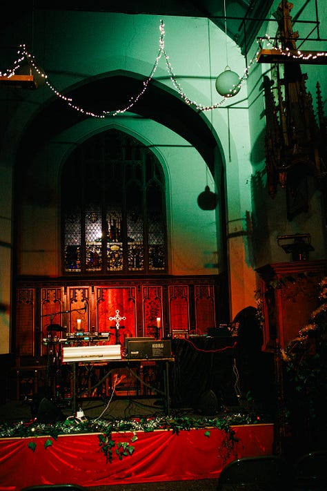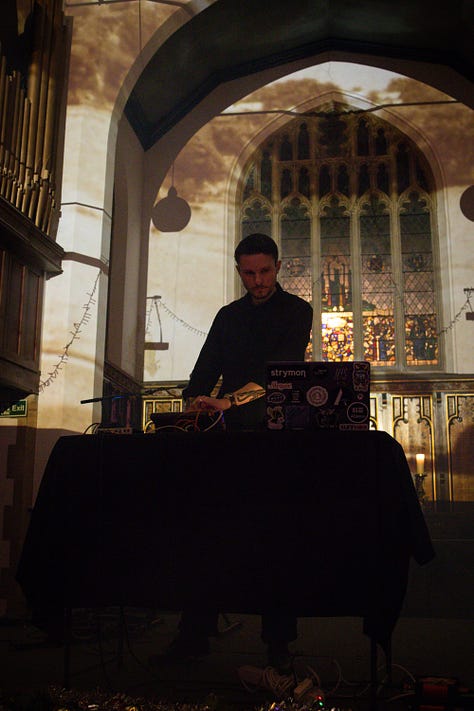 I’d love to start off this post by saying a huge thank you to everyone who came to & supported Solstice Solidarity Synthesis last Wednesday at The Old Church in Stoke Newington for our Winter edition. This was the third concert in our series, and although I was a bit worried about attendance since the date was so close to Christmas, everyone came through and we had nearly the same amount of people as we did over summer. Grateful for incredible sets from Sinemis, Louf, rhubiqs and Elisa & I can really feel that we are starting to build such a wonderful community! Also thankful to have been able to perform a more ambient set myself, which included a few released tracks I’ve never performed live (‘Marmo’ and ‘Shiver’) as well as a brand new track coming out on my upcoming release that made people quite emotional (including myself). More importantly, we were able to donate £550 to City Harvest London, which is going to help provide 1,650 meals for Londoners this holiday season. How amazing is that! Truly chuffed and looking forward to starting to plan the summer one - save the date for late June 2026! If you want to support the series in the meantime, you can get yourself a Solstice Solidarity Synthesis tie-dye t-shirt on bandcamp (or reach out to me directly!), lovingly dyed by mini Lace & myself.